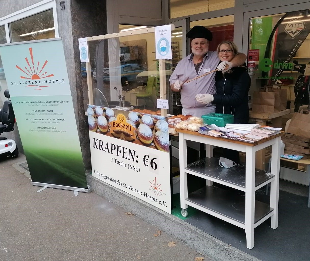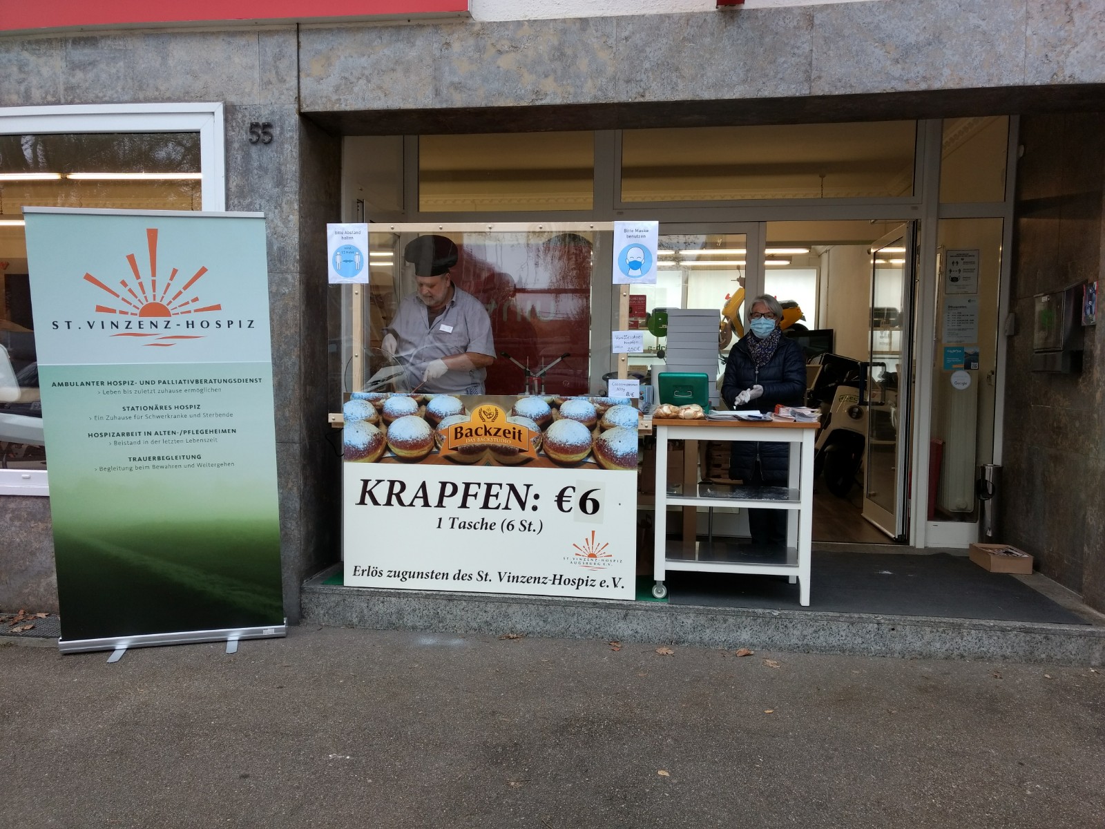 2000 Krapfen in 4 Stunden gingen am 11.11.2020 über die Standtheke des Inhabers Lothar Rother vom Backstudio BackZeit. Der ehrenamtliche Hospizhelfer wollte mit seiner Aktion wieder einmal das Hospiz in den Mittelpunkt stellen und es mit dem Erlös unterstützen. Dass die Krapfen schon um 13.00 Uhr ausverkauft waren, davon war er selbst überrascht. „Das Ganze war ein Probelauf, wie so eine Aktion bei den Augsburgern ankommt. Mit diesem Ansturm hatten wir nicht gerechnet“, sagte Lothar Rother. Er plant nun schon die nächste Krapfenaktion – diesmal mit 4000 Krapfen am Faschingsdienstag, 16.02.2021.
