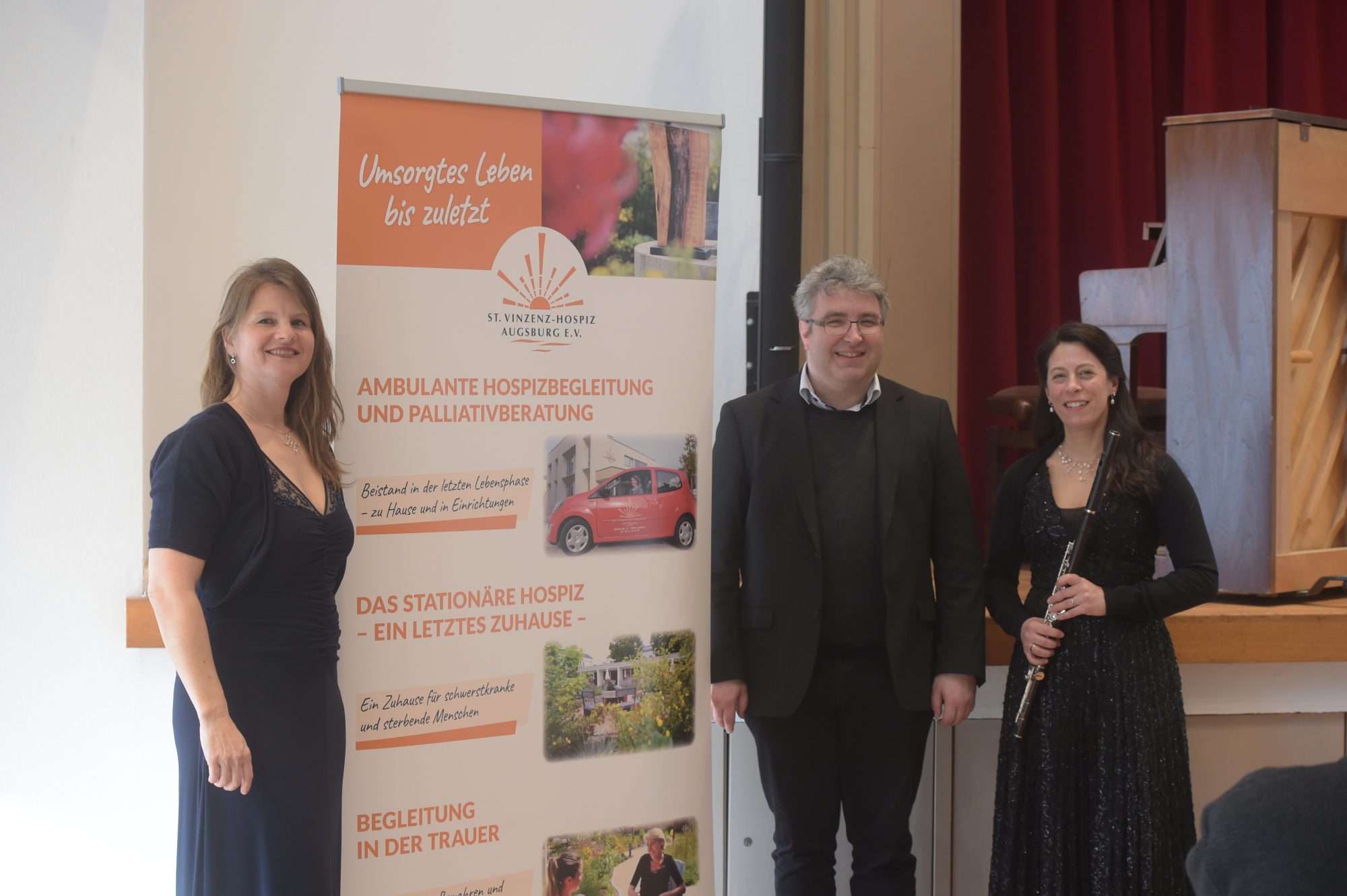 Augsburg (oh). Veilchen, Blütenzauber und fröhliches Vogelgezwitscher zauberte das St. Vinzenz-Hospiz musikalisch mit einem „Konzert zum Frühlingsbeginn“ am Wochenende in den gut gefüllten Kolpingsaal an der Frauentorstraße. Die Solisten Christiane Sándor (Sopran), Annette Becherer (Flöte) und Peter Bader (Klavier) präsentierte damit einen ersten Höhepunkt in einer besonderen Programmreihe anlässlich des 30-jährigen Bestehens des St. Vinzenz-Hospizes in Augsburg.
