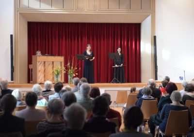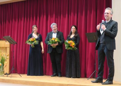 Es wurden aber auch melancholisch-romantische Saiten angeschlagen, etwa mit dem sinnlichen Werben um das „Fischermädchen“ von Franz Schubert und Felix Mendelssohn Bartholdys „Leise zieht durch mein Gemüt“ und „Das erste Veilchen“. Viel Applaus gab es für die gelungenen Darbietungen durch Christiane Sándor, Annette Becherer und Peter Bader, die charmant durch ihr Programm führten und ihr Publikum jederzeit begeistert mitzunehmen wussten.