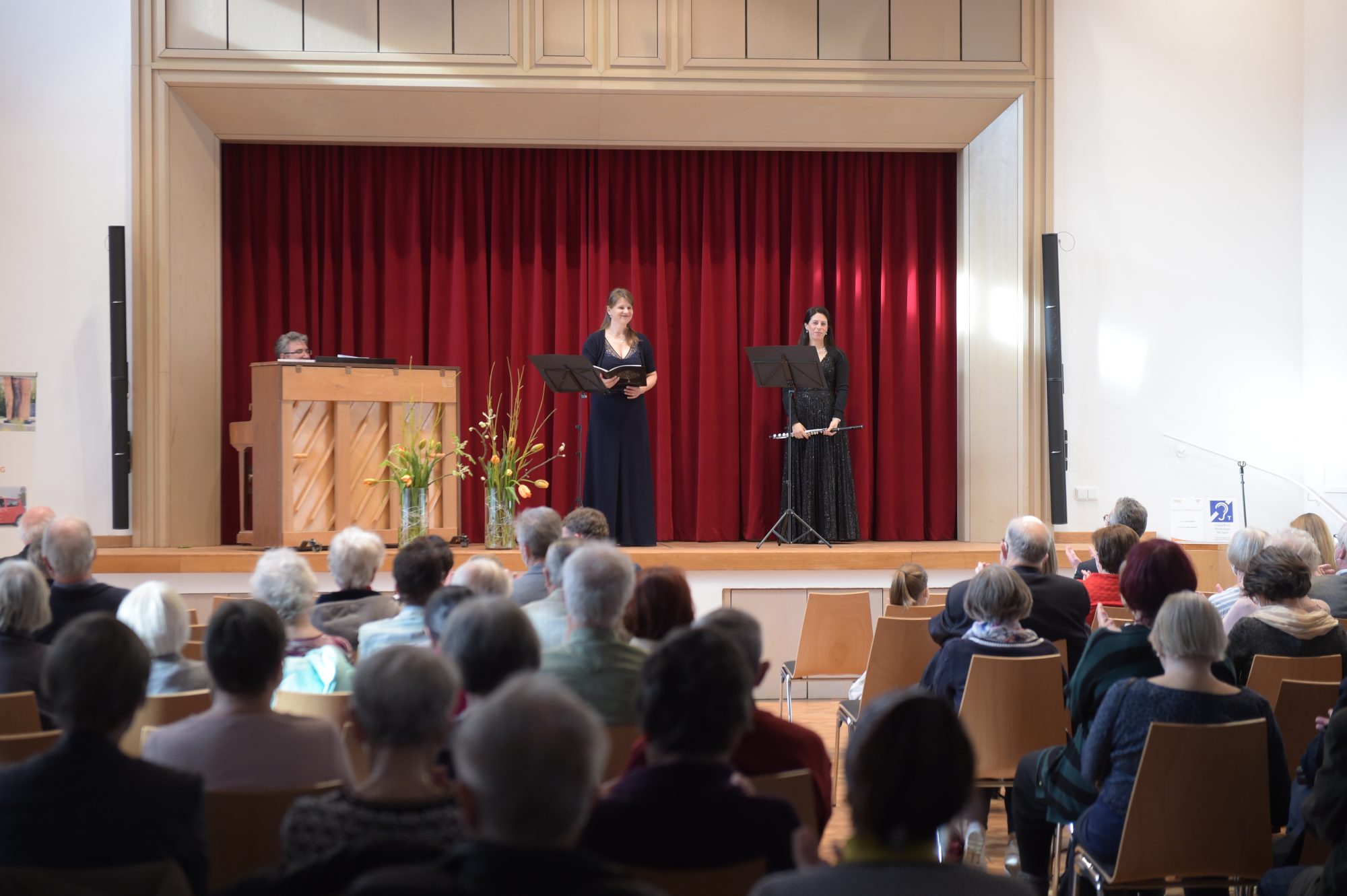 Ein farbenprächtiges „Sträußchen“ an Frühlingsimpressionen boten dann die drei Musiker in einem wohlgesetzten Programm, das Raum ließ für zahlreiche Schattierungen von Frühlingsgefühlen zwischen heiterem Frohlocken und ahnender Melancholie. Zum Auftakt kam fröhlich „Der Frühling hat sich eingestellt“ von Johann Friedrich Reichardt daher, ebenso wie eine Arie für Sopran, Flöte und Klavier von Bach mit dem Titel „Jesu, Brunnquell aller Gnaden“ oder stimmungsvoll ebenso passend Bachs „Französische Suite Nr. 5“ (Klavier). Dramatisch aufgebaut wie eine Oper en miniature überraschte mit frechen und erfrischenden Kapriolen das Rondo für Flöte und Klavier von Franz Xaver Mozart.