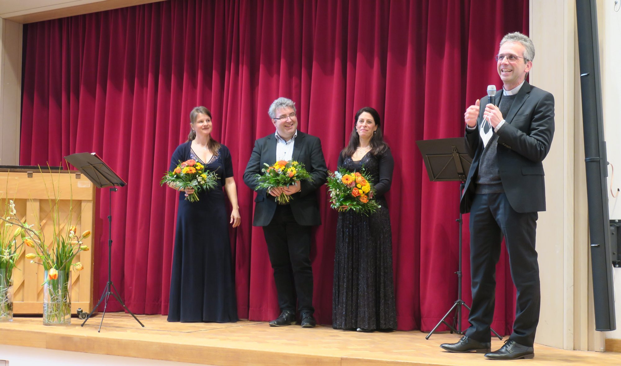 Die Künstler*innen v.l.n.r. Christiane Sándor (Sopran), Peter Bader (Klavier)und Annette Becherer (Flöte)