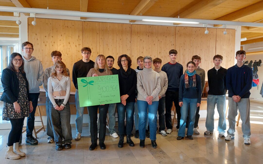Bei ihrem Spendenlauf zugunsten des St. Vinzenz- Hospiz Augsburg e.V. im Juli 2025 haben die Schülerinnen und Schüler des Maria-Stern-Gymnasiums die unglaubliche Summe von 9.100,96 € erzielt. Beim Spendenlauf laufen engagierte Schülerinnen und Schüler Runden und Sponsoren spenden pro Runde einen vorher festgelegten Betrag.