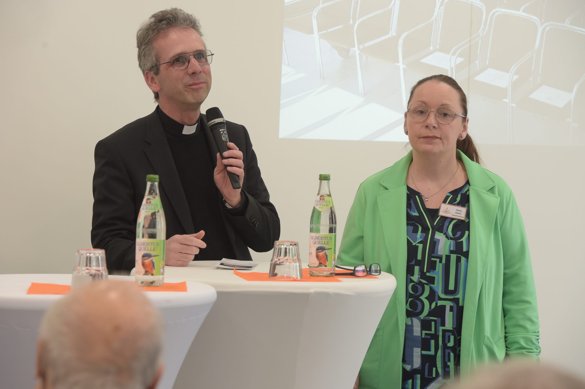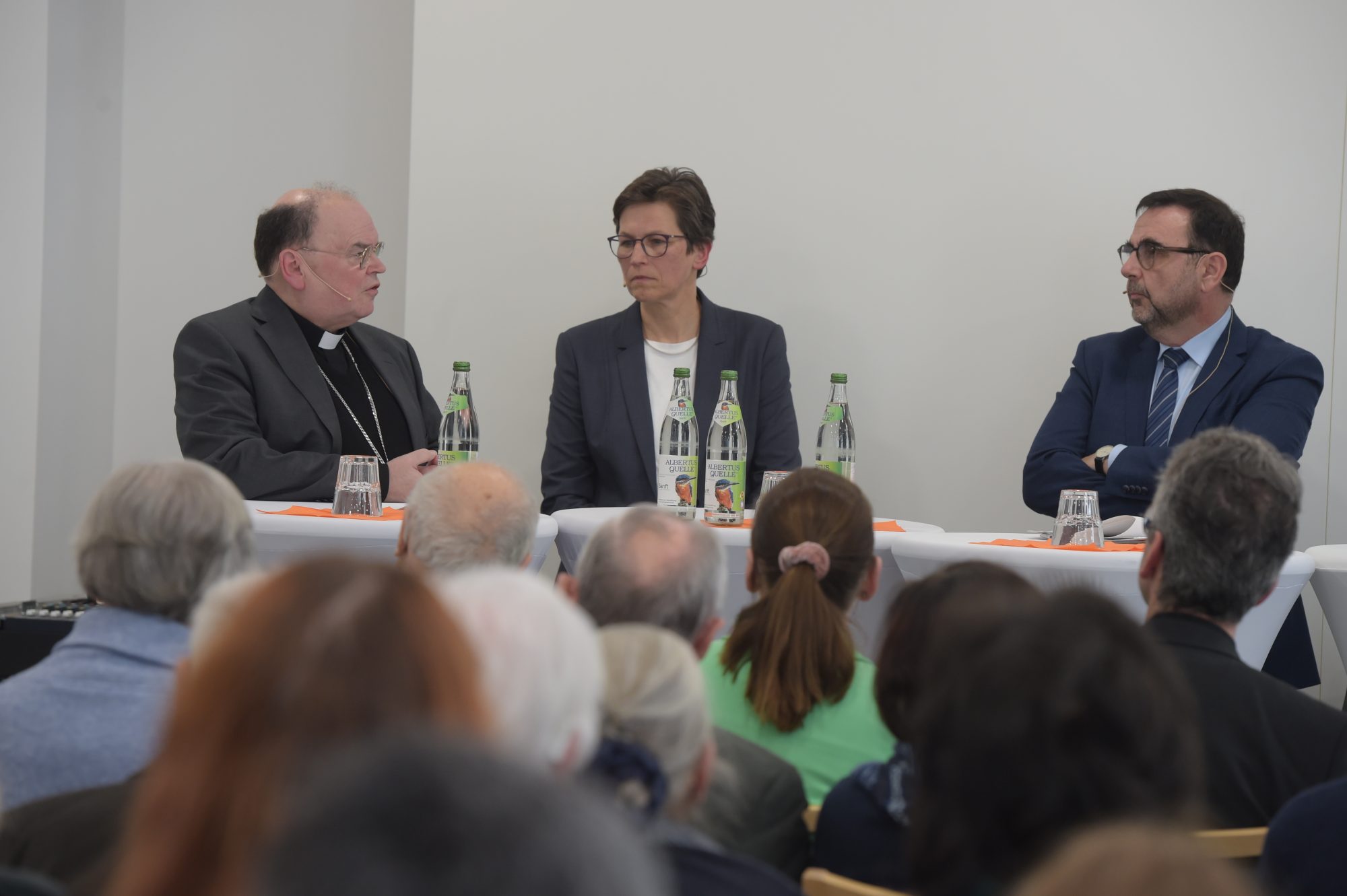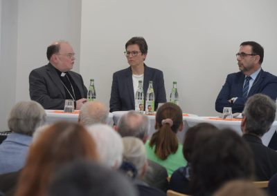 „Hospiz hilft – oder?“; dieser Fragestellung widmeten sich im Augsburger St. Vinzenz-Hospiz Bischof Bertram, Staatsminister Klaus Holetschek und Professorin Dr. Claudia Bausewein. Diskutiert wurde die schwierige Frage der Sterbehilfe im Palliativbereich und ob und wie sich gesetzliche und kirchliche Positionen dazu vereinbaren lassen. Die zahlreichen Zuhörerinnen und Zuhörer hatten nach der Podiumsdiskussion Gelegenheit Fragen an die Referenten zu stellen.