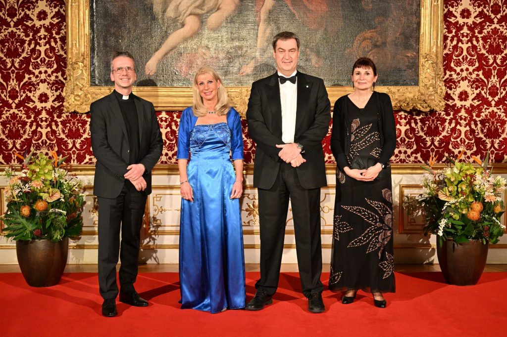 Rund 1800 Gäste wurden am 13. Januar 2023 in der Münchner Residenz erwartet. Vom St. Vinzenz-Hospiz Augsburg e.V. mit dabei waren Gabriele Knoller und Domkapitular Armin Zürn. Beide engagieren sich im Vorstand des Hospizes für das Wohlergehen schwerstkranker und sterbender Menschen. Bereits im Frühjahr 2022 wurde Frau Knoller für ihr 30-jähriges Vereins-Engagement die Verdienstmedaille der Stadt Augsburg verliehen. Nun erhielt sie die Einladung in die Residenz. Beim Defilee wurden sie und Domkapitular Zürn vom Ministerpräsidenten und seiner Frau Karin Baumüller-Söder persönlich begrüßt.