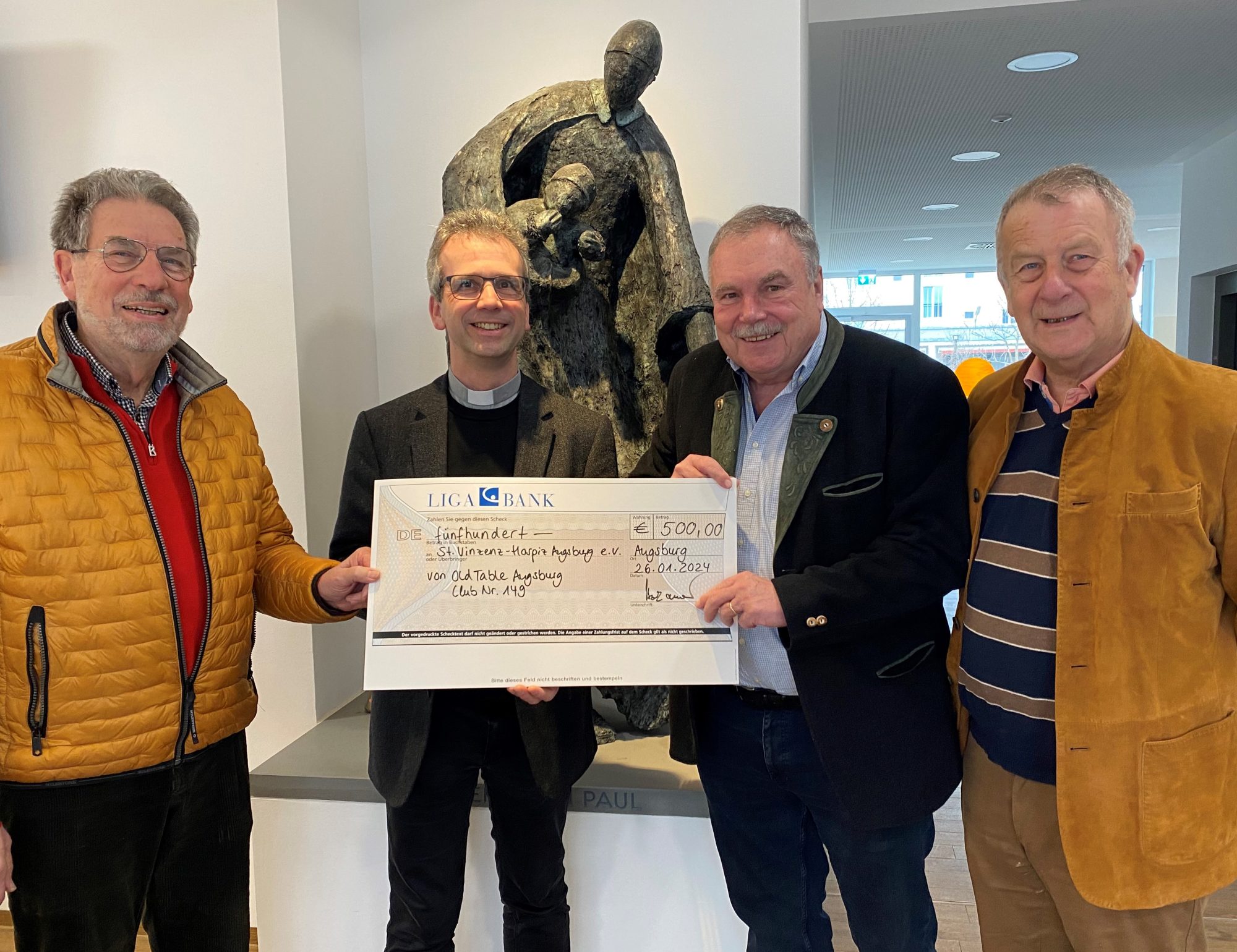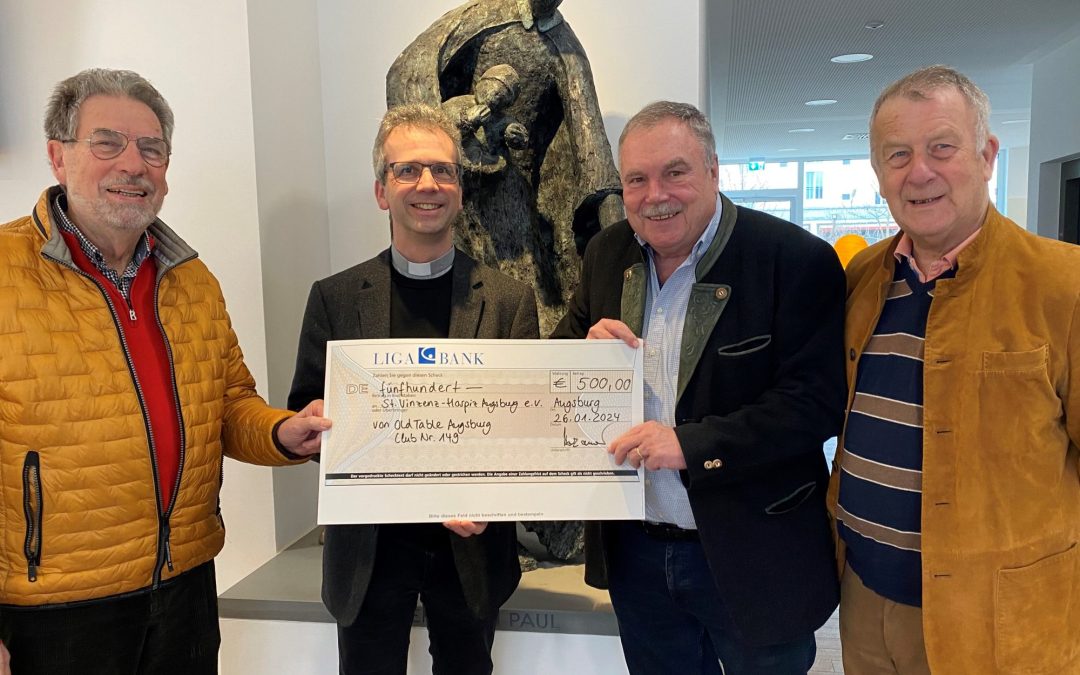 Der OLDTABLE-Club 149 Augsburg hat seine letztjährige Weihnachtsspende in Höhe von 500 € dem Vorstand des St. Vinzenz-Hospiz Augsburg, Herrn Domkapitular Armin Zürn, überreicht.